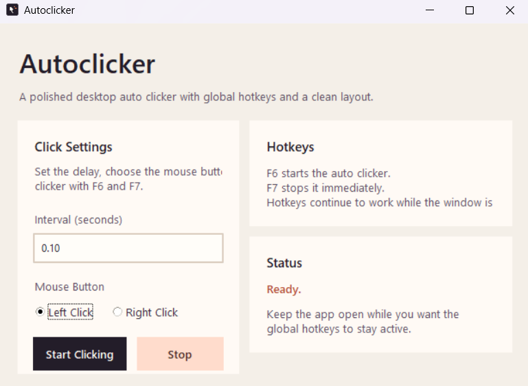 Just easy to use autoclicker withouth maliscious code.